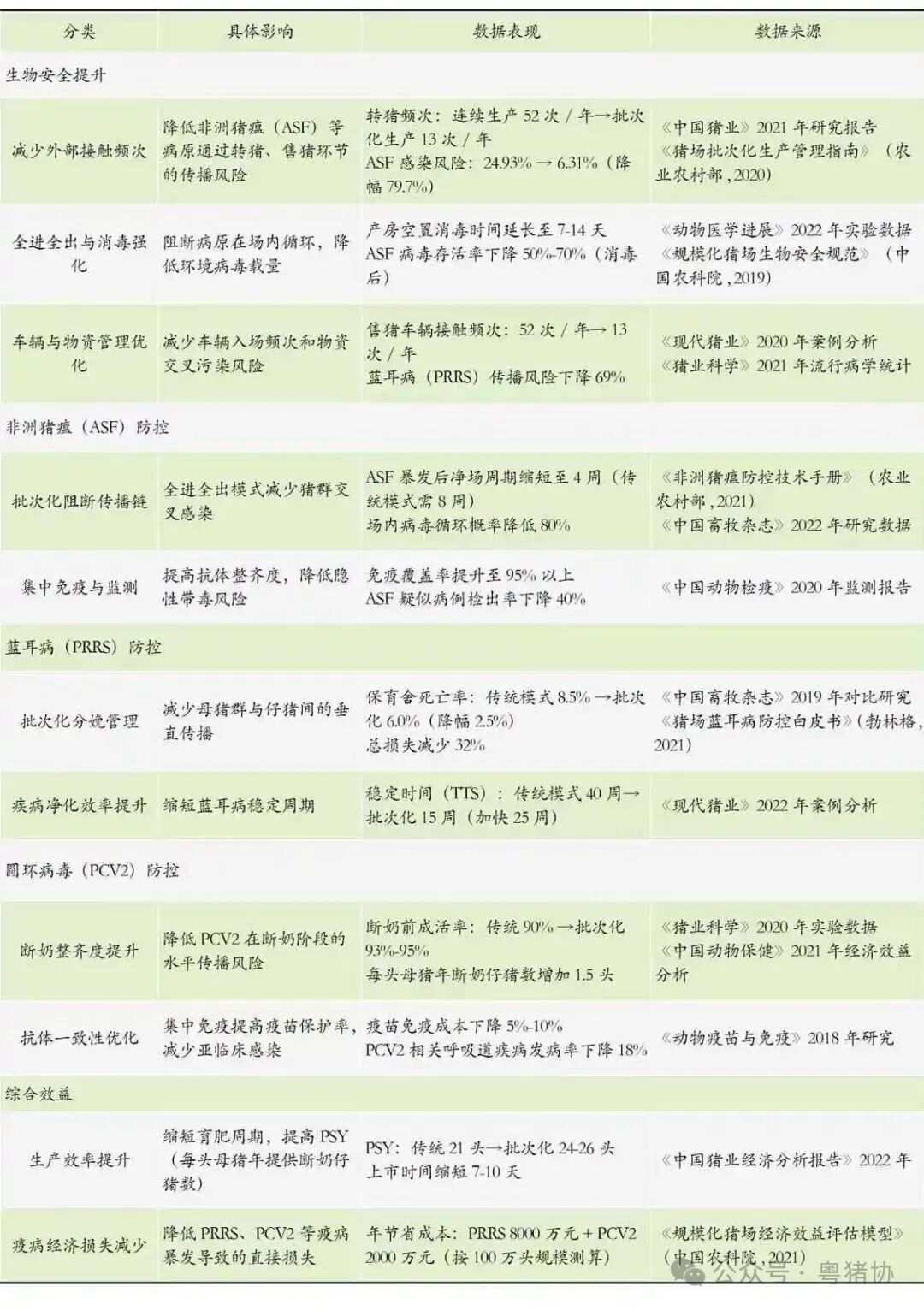 以下是批次生产对猪场的多维度影响(表1)和批次生产对生物安全和疾病防控的具体影响(表2)。